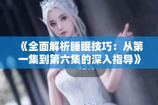 《睡眠指导1∽6集》以生动有趣的方式探讨了睡眠的重要性和相关技巧。每一集都针对不同的睡眠问题提供解决方案,力求帮助观众提升睡眠质量,找到身心平衡的方法,是一部兼具实用性与趣味性的佳作。