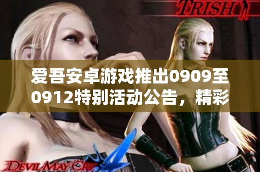 随着爱吾安卓游戏的不断发展,我们始终致力于为玩家提供更好的游戏体验和精彩的活动。为了回馈广大玩家的支持和厚爱,爱吾安卓游戏将在0909日至0912日之间推出一系列特别活动。这段时间内,玩家们不仅可以享受到丰富多彩的游戏内容,还能够获得丰厚的奖励,千万不要错过哦!
