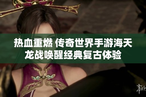 综上所述,《热血重燃 传奇世界手游海天龙战》是一款成功将经典与现代相结合的游戏,给玩家带来了难忘的复古体验。无论是对老玩家的情怀召唤,还是对新玩家的热情吸引,都展现了这一游戏的广泛魅力。它不仅仅是一场游戏的重燃,更是一段属于每一个玩家的传奇旅程。让我们一起回归那激情澎湃的岁月,在热血重燃传奇世界中,开启新的冒险吧!