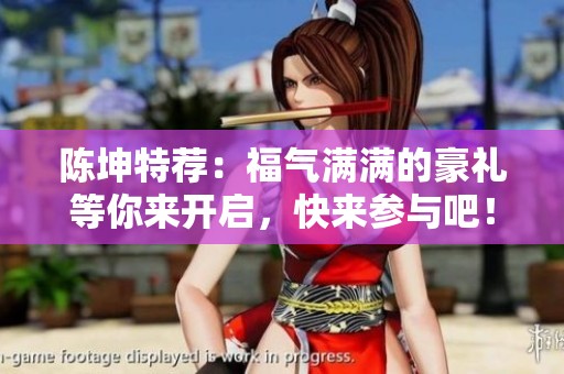 近年来,随着生活水平的提高,人们对于物质和精神的追求也愈发多样化。在这个充满竞争的时代,如何把握住每一个值得珍惜的机会,往往成为我们生活的一部分。而《陈坤特荐:福气满满的豪礼等你来开启,快来参与吧!》则为大家提供了一个绝佳的机会,让你在忙碌的生活中得到一些意想不到的惊喜。