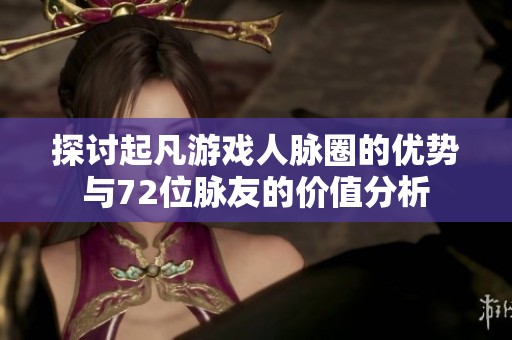 在当今数字化时代,网络游戏不仅为玩家提供了娱乐体验,还为他们创造了丰富的社交机会。起凡游戏作为一个独特的平台,其人脉圈的构建更是令人瞩目。人脉圈不仅仅是一个简单的交友工具,它为广大玩家带来了许多实实在在的优势,尤其是72位脉友的价值更是不容忽视。