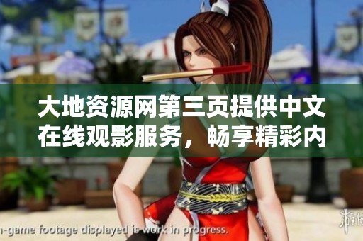 作为一个中文在线观看的平台,大地资源官网为用户带来了极大的便利。所有资源均可免费观看,用户只需简单注册即可进入,享受丰富的影视内容。同时,网站界面简洁易用,便于寻找和挑选所需电影或电视剧。